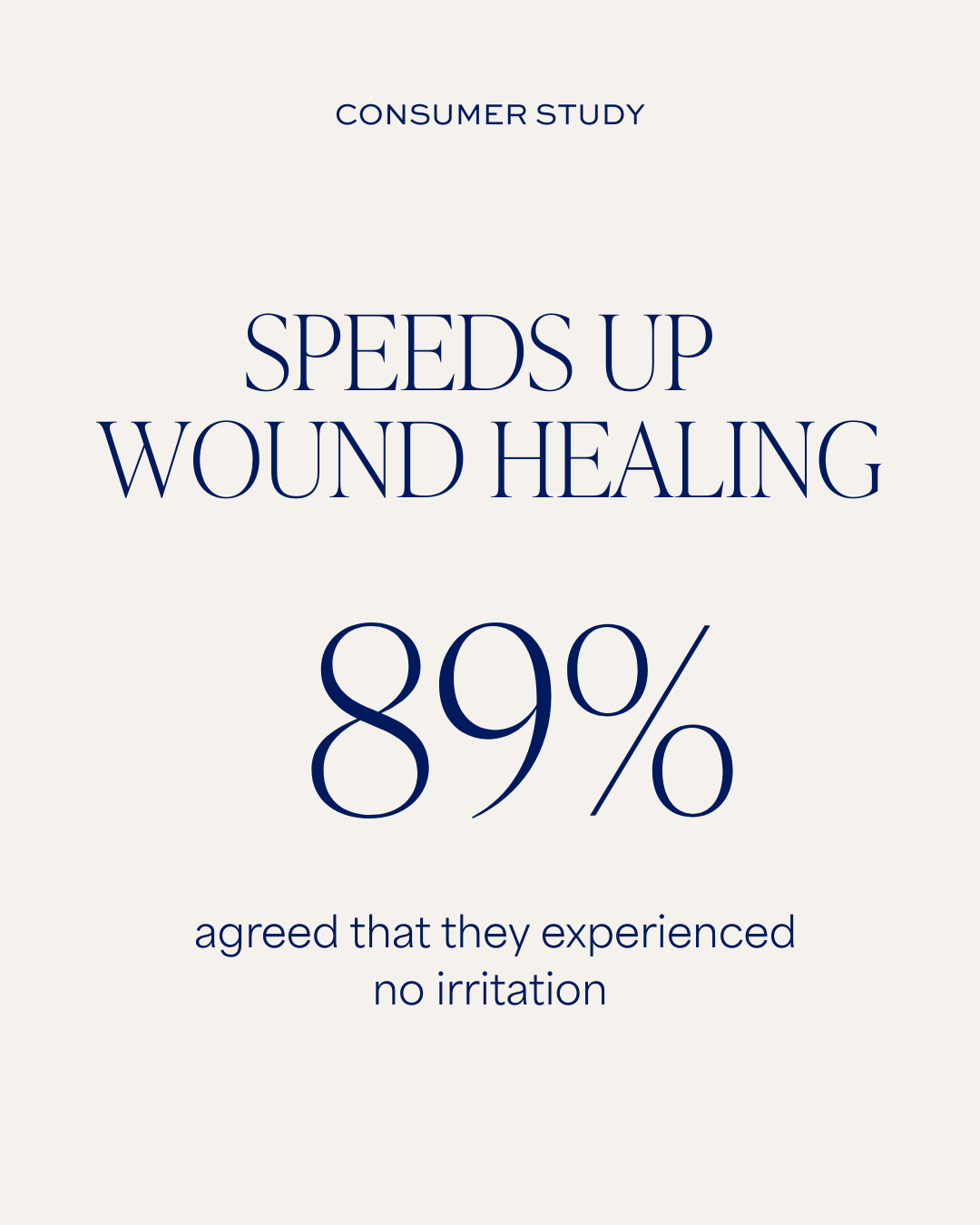 Hypochlorous acid and allantoin work together to accelerate wound healing and repair damaged skin tissue, helping skin recover from irritation, breakouts, or environmental stress.